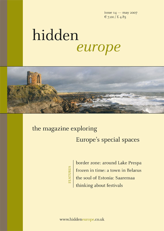 Welcome to hidden europe 14. In this issue we visit the border zone around Lake Prespa, Grodna in Belarus, discover the soul of Estonia in Saaremaa and think about festivals and the festivalisation of culture.