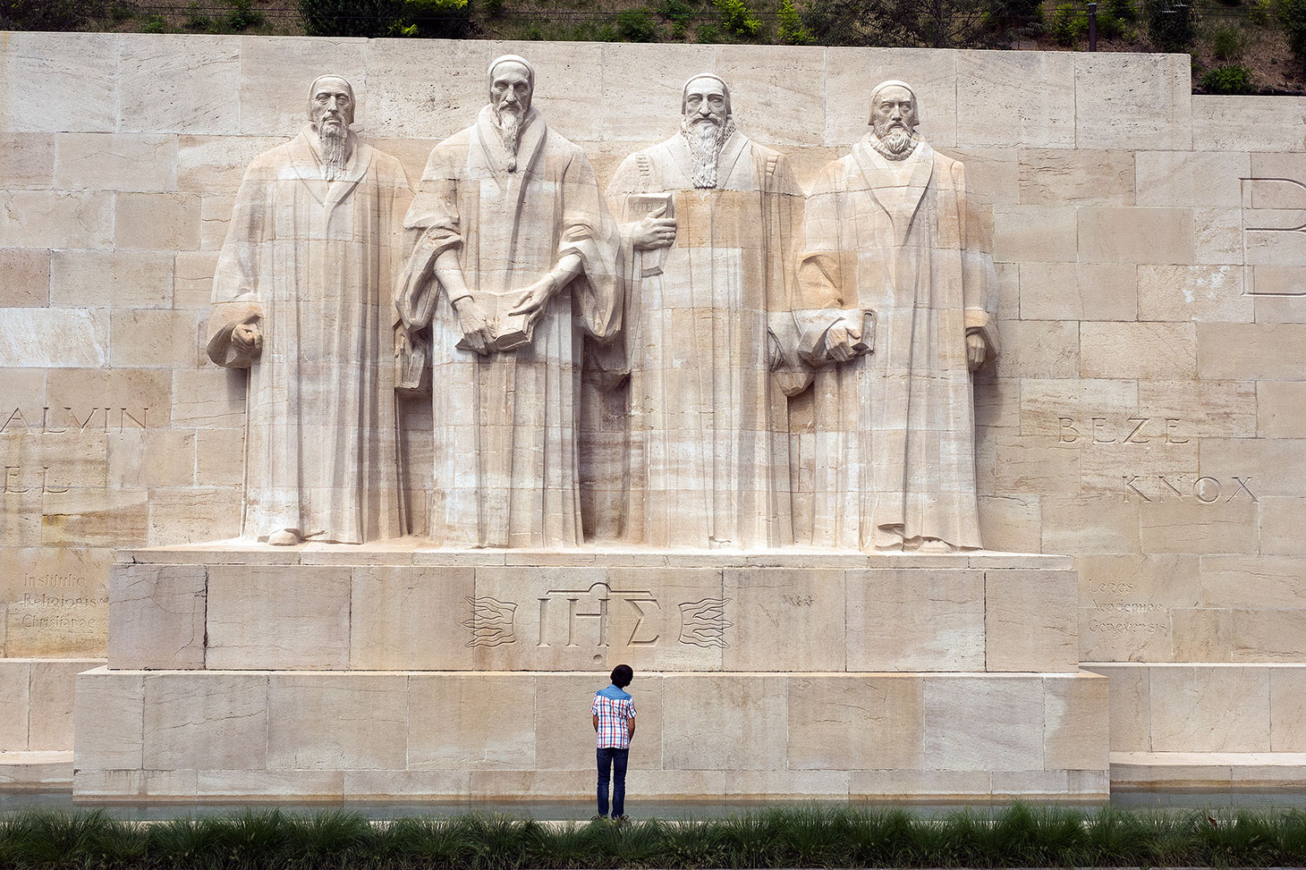 The city’s four most famous reformers stand centre stage in the monumental sculpture which recalls the Reformation. The mur des réformateurs leaves no doubt as to who are the star turns in the Geneva story: Farel, Calvin, Beza and Knox — none of them born in Geneva. But today they gaze out over a beautiful park, the perfect place for a Sunday afternoon stroll, which is much loved by all residents of the city. Arabic and Turkish women chat while their children play; a young lad stands below the figure of Calvin, looking up to the four giants of Geneva history; an elderly gentleman sits on a bench reading a Russian newspaper; while onlookers, men and women of all colours and creeds, gather around a large open-air chess board, eager to see if Alekhine’s gun — two rooks and a queen in file — will lead to a quick checkmate.