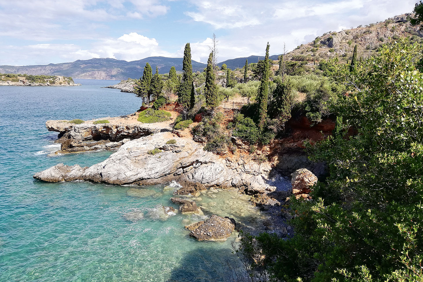 The view from the garden looking north towards Kardamyli, with the islet of Merope on the left (photo © Duncan JD Smith).